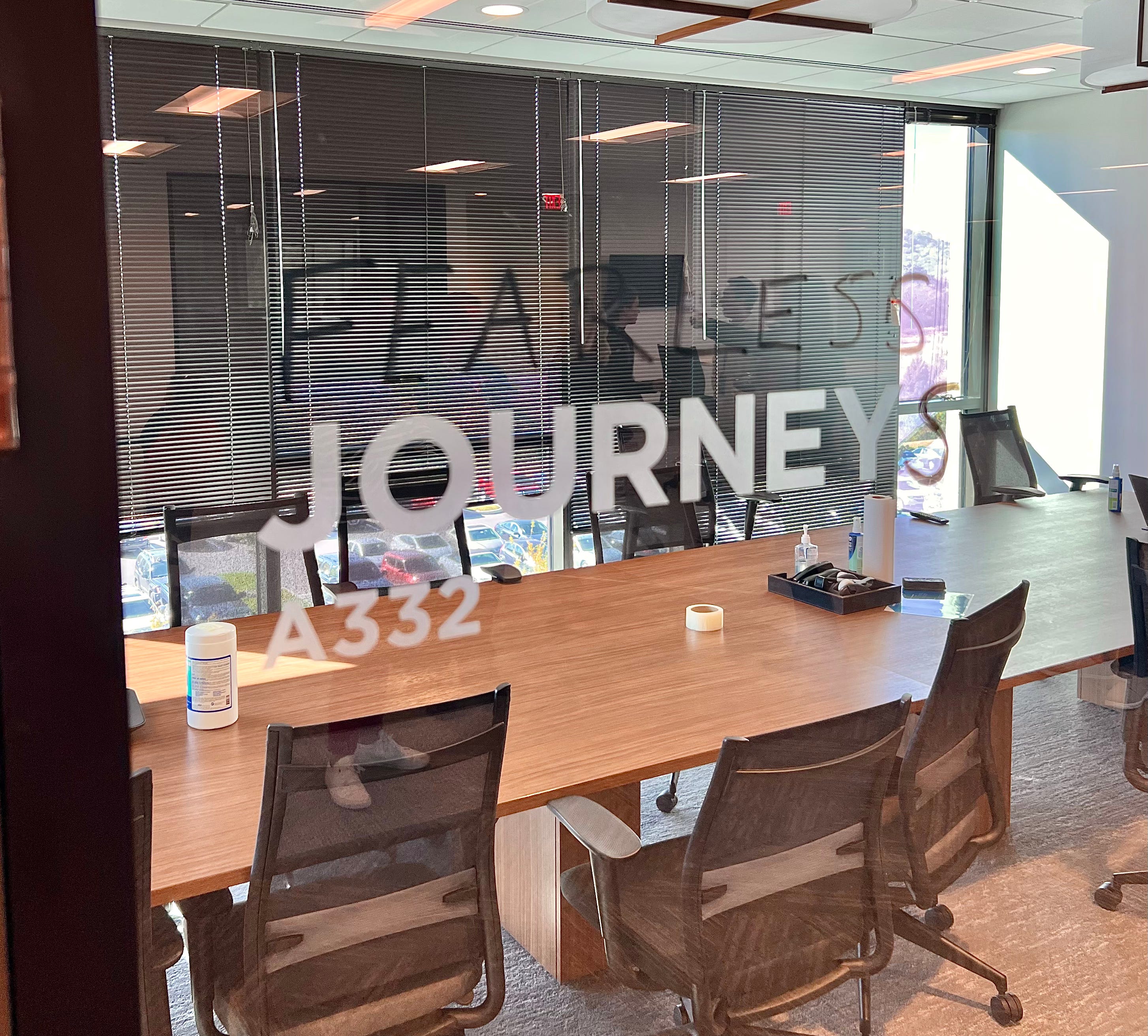 When we arrived to the conference room near the end of our afternoon at Ramsey Solutions, we noticed the staff there had used magic marker on the glass wall of the room to rename it to “Fearless Journeys.” We all got a kick out of that, but it also showed me how intentional everyone in this company is about everything they do.